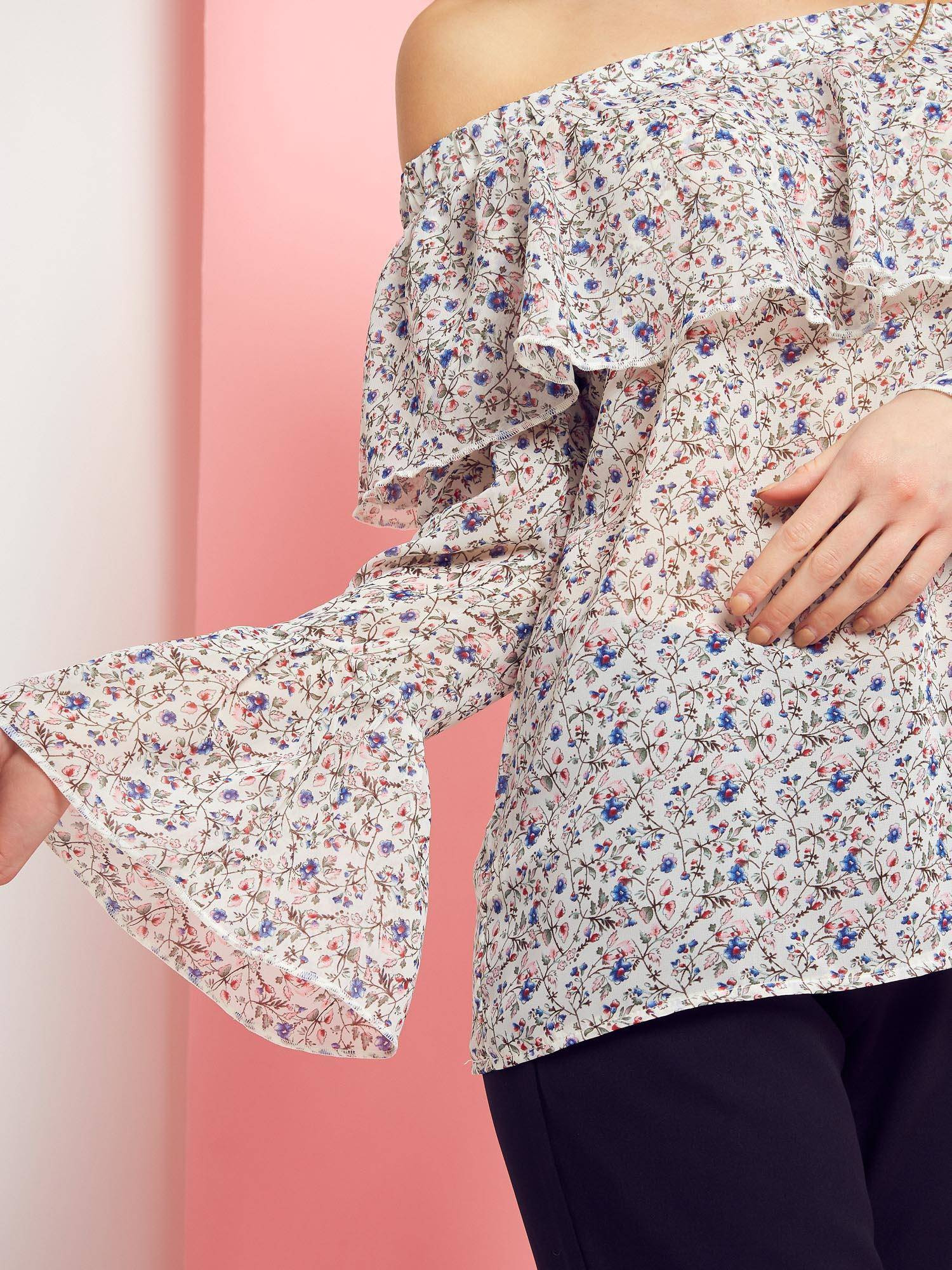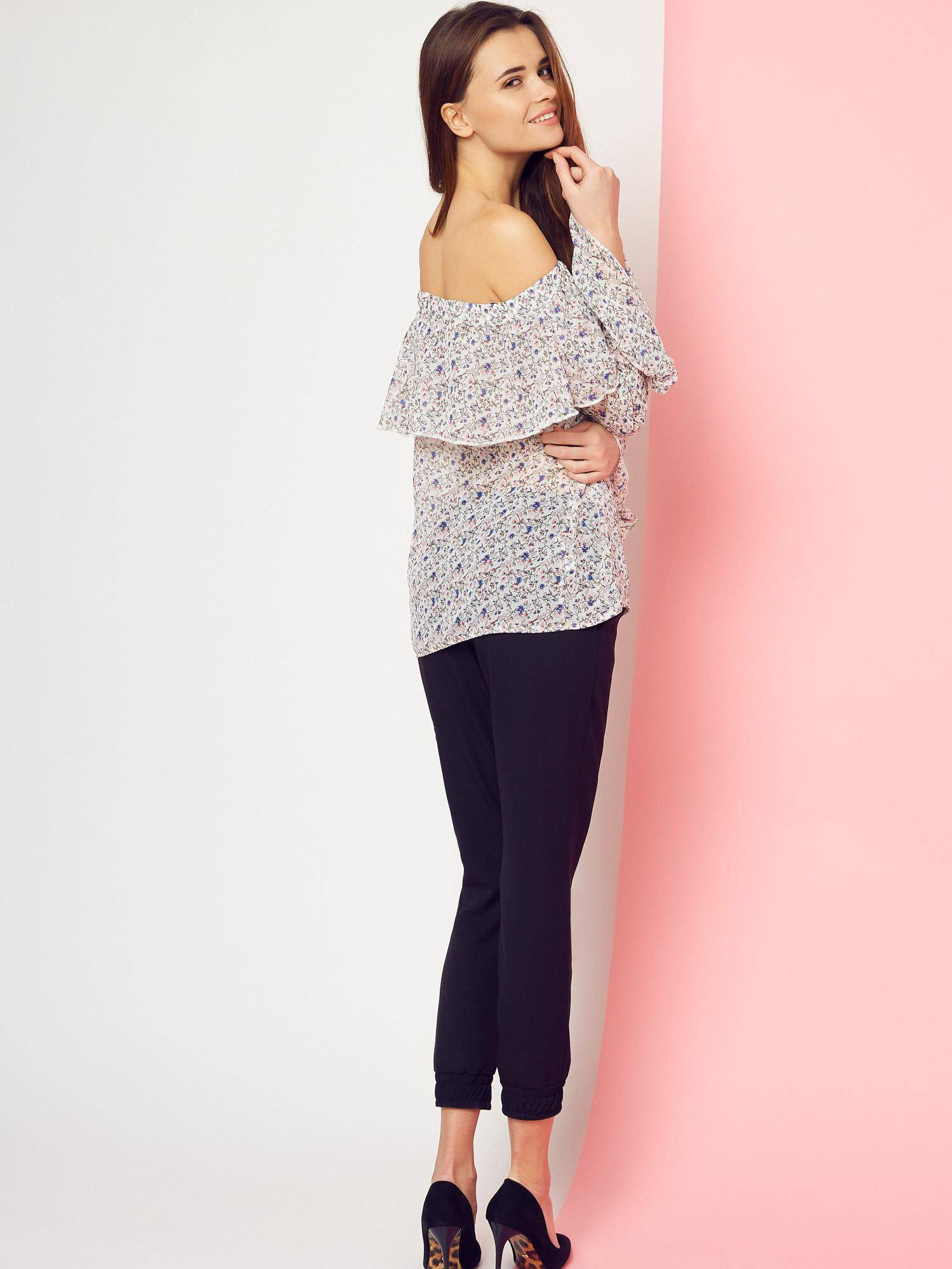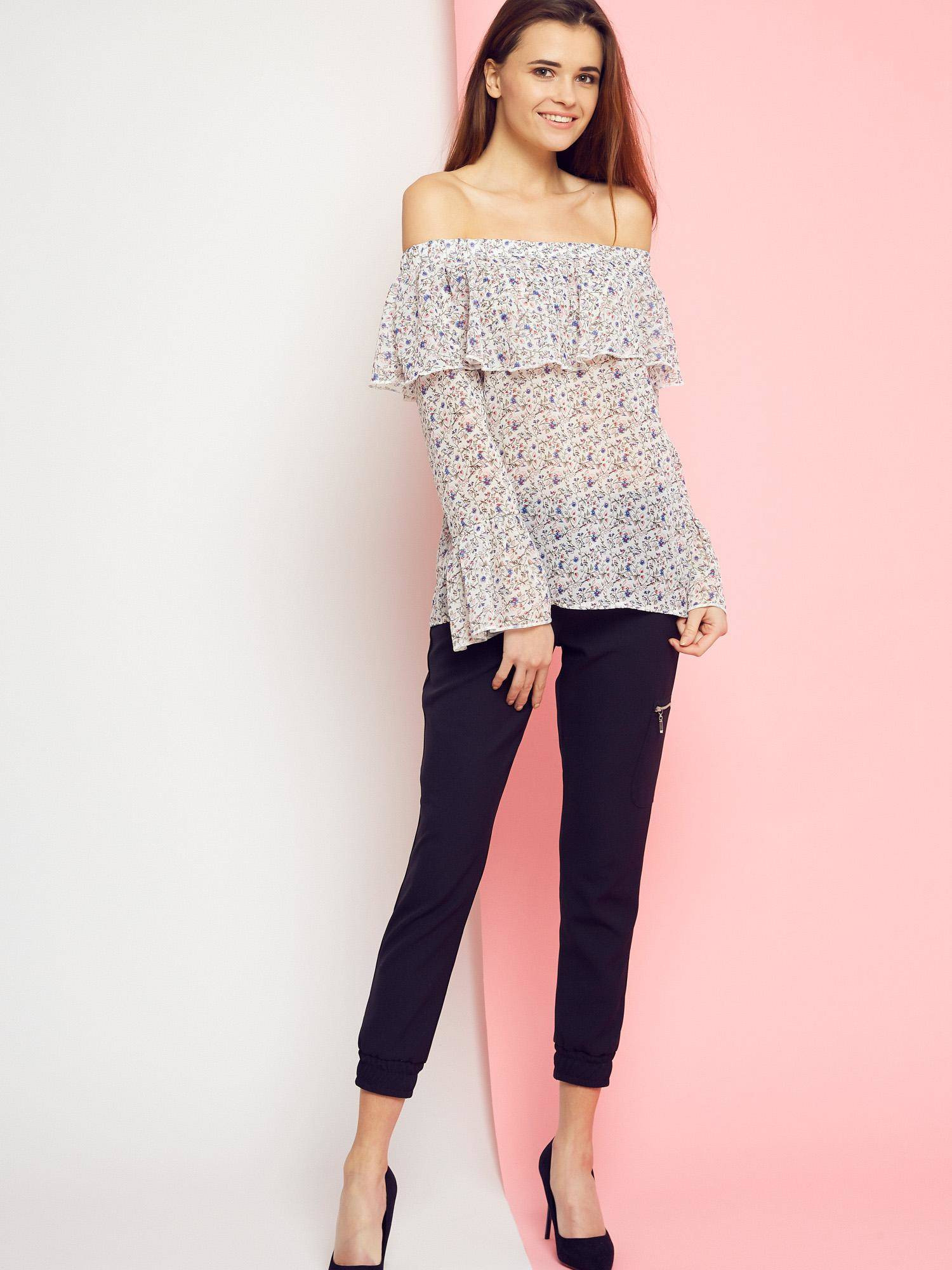 Bluzka w kwiaty z dekoltem carmen Cocomore Boutiqe biała