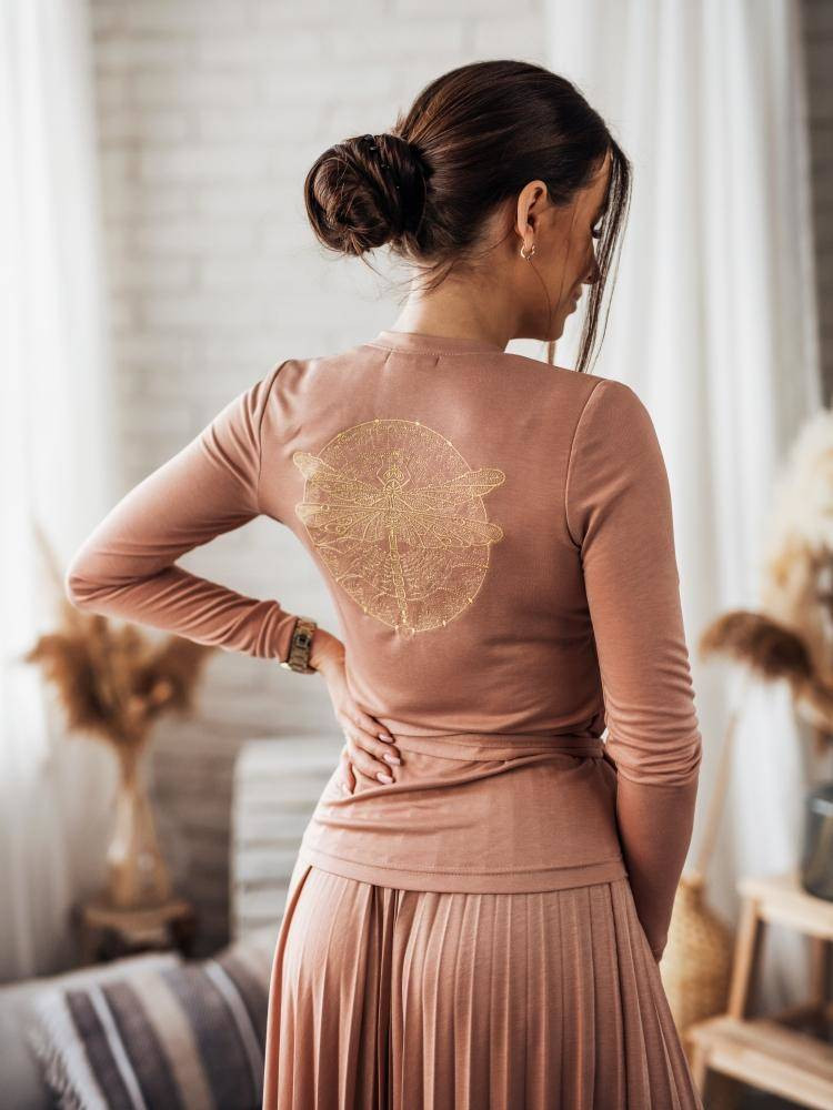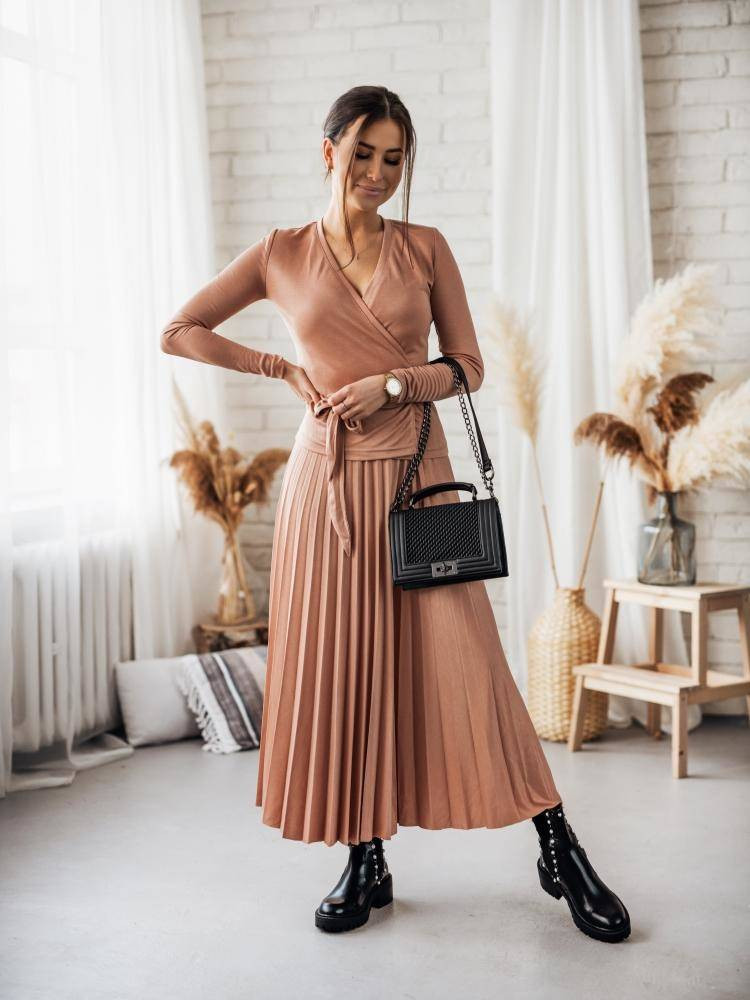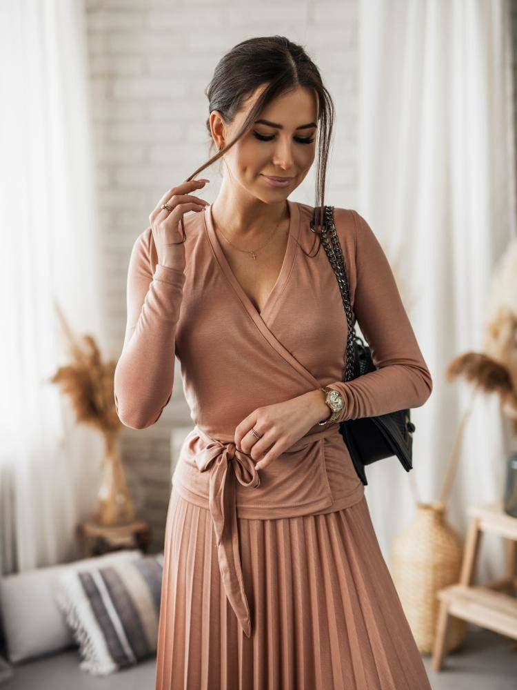 Fantastyczna bluzka z kobiecym wiązaniem w talii polskiej kolekcji Cocomore. Model wykonany z wysokiej jakości, ładnie układającego się materiału. Posiada modny haft na plecach. Bluzkę możesz kupić w komplecie z plisowaną spódnica midi.