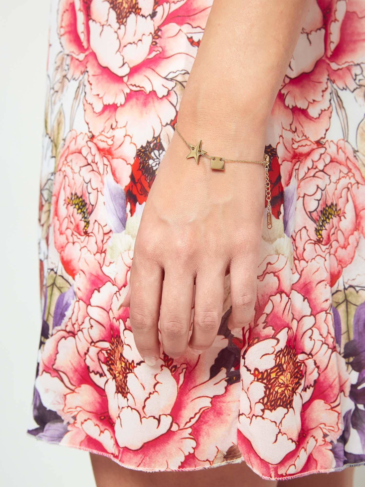 Pozłacana 14 karatowym złotem bransoletka z zawieszkami.
