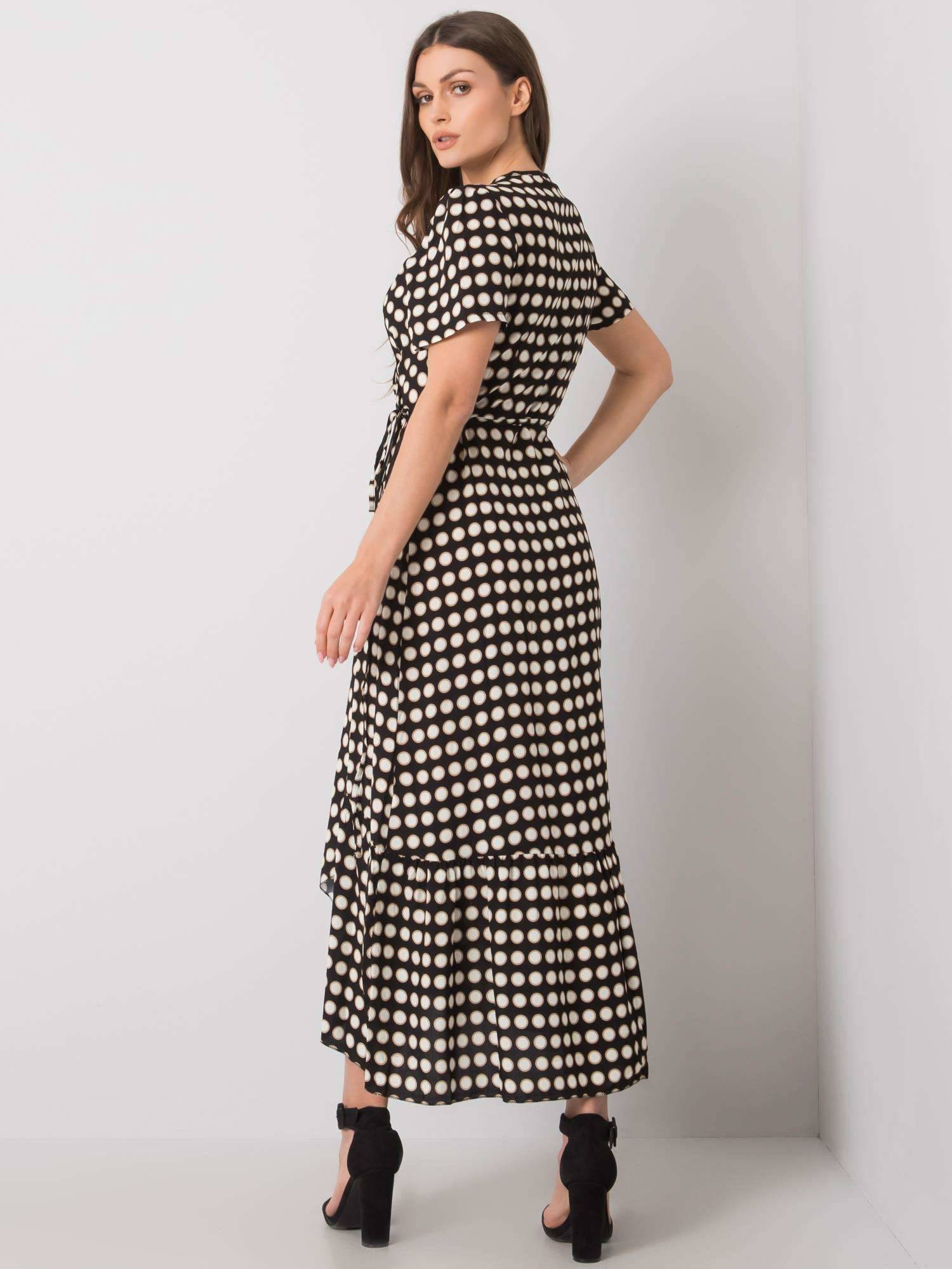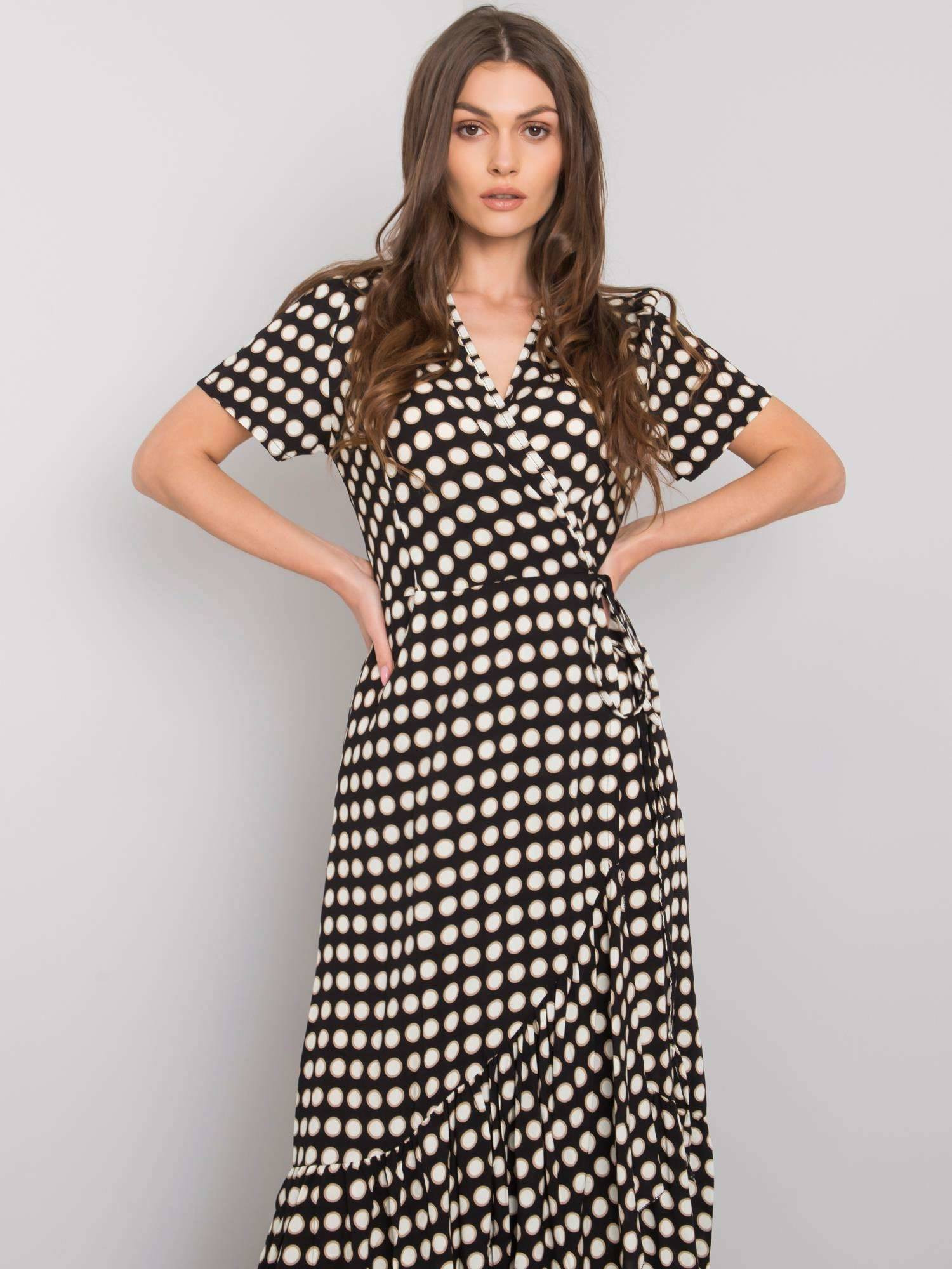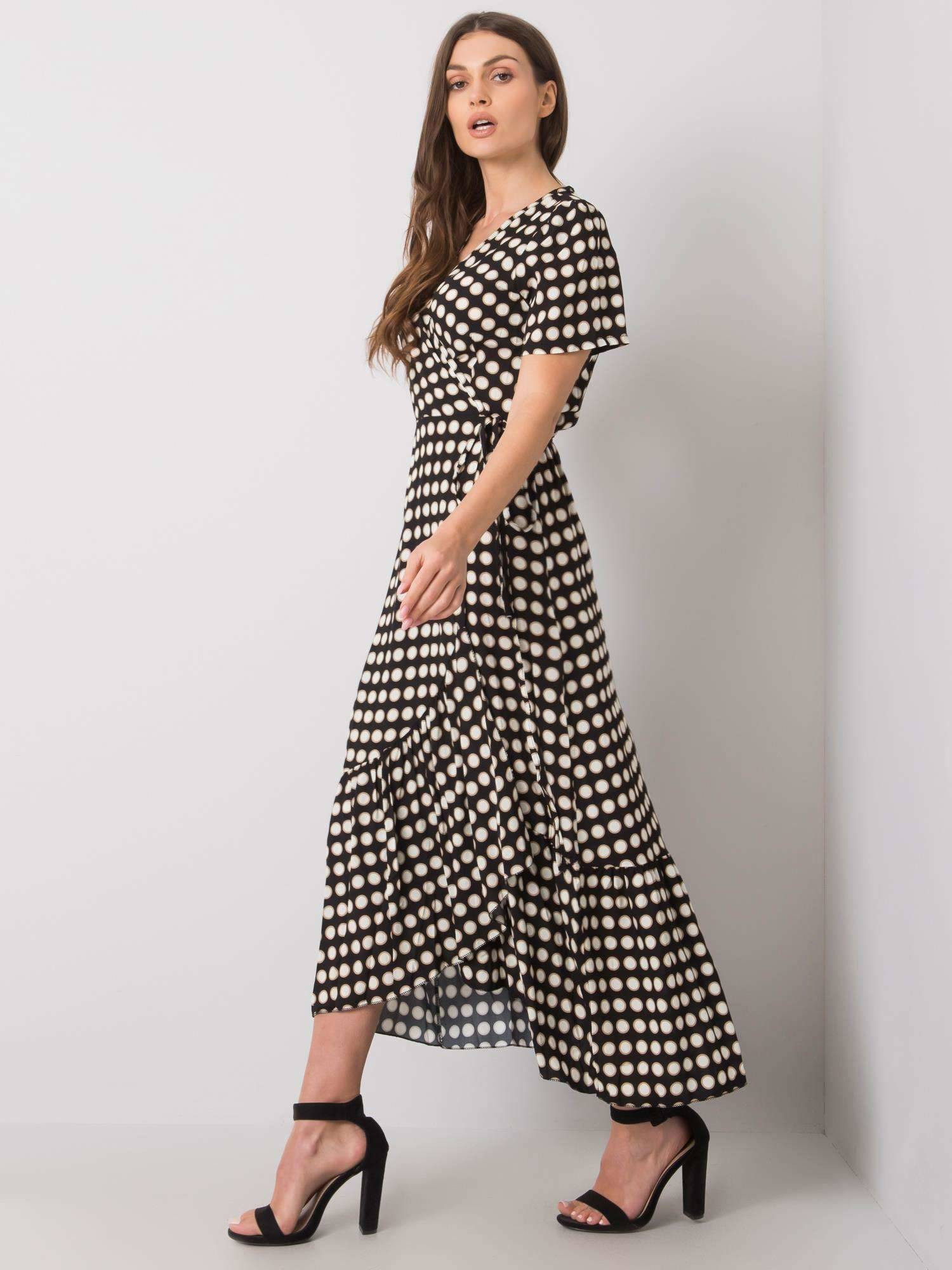 Czarna sukienka maxi w groszki kopertowy dekolt Yups