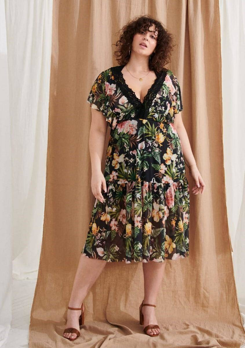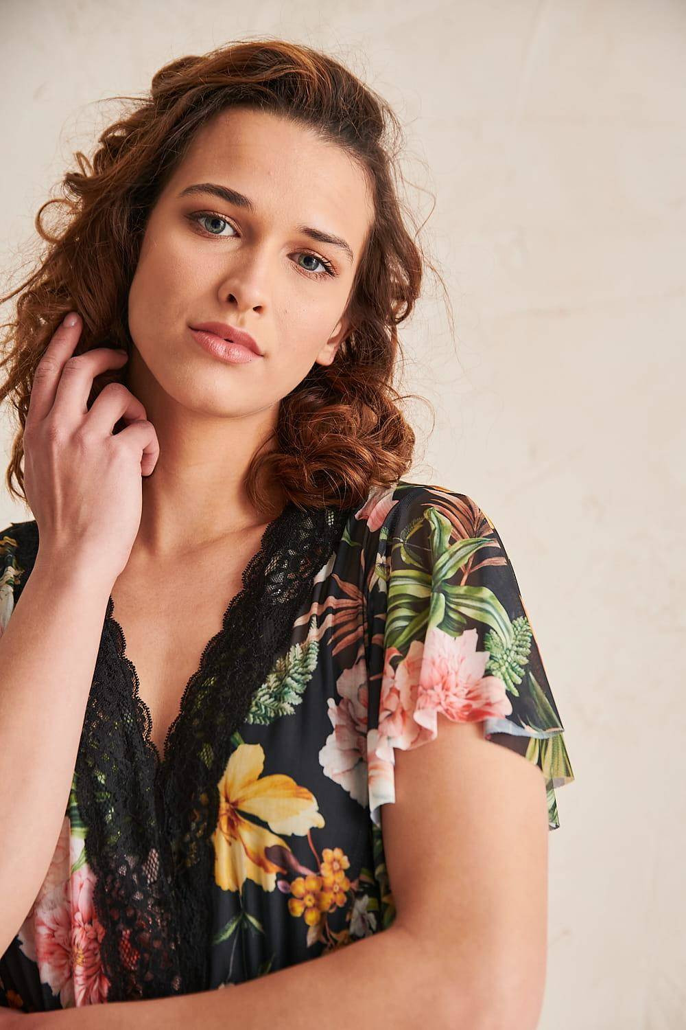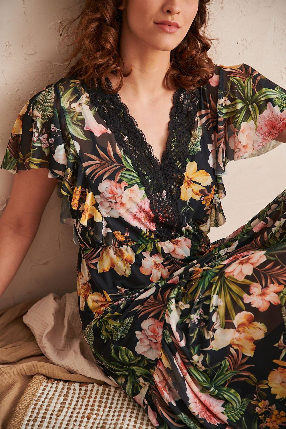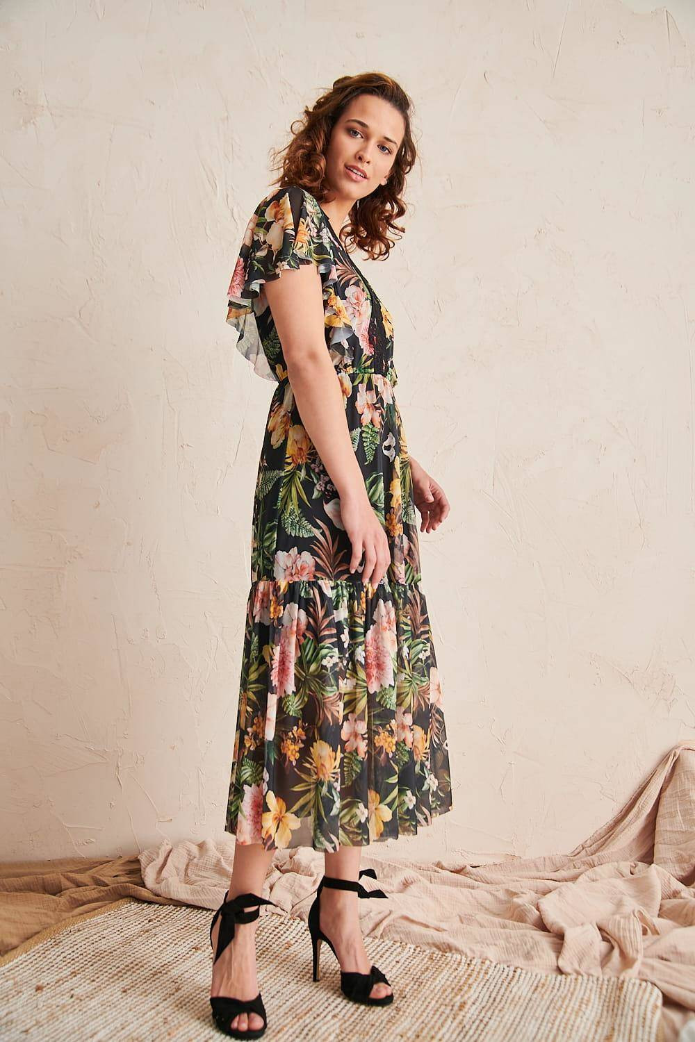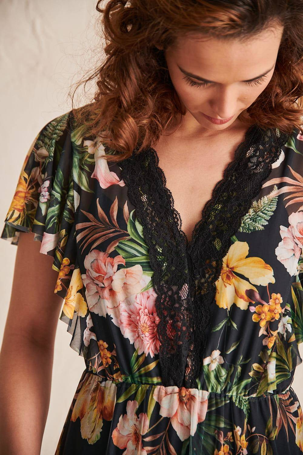 Czarna sukienka w kwiaty dekolt V Blue Shadow