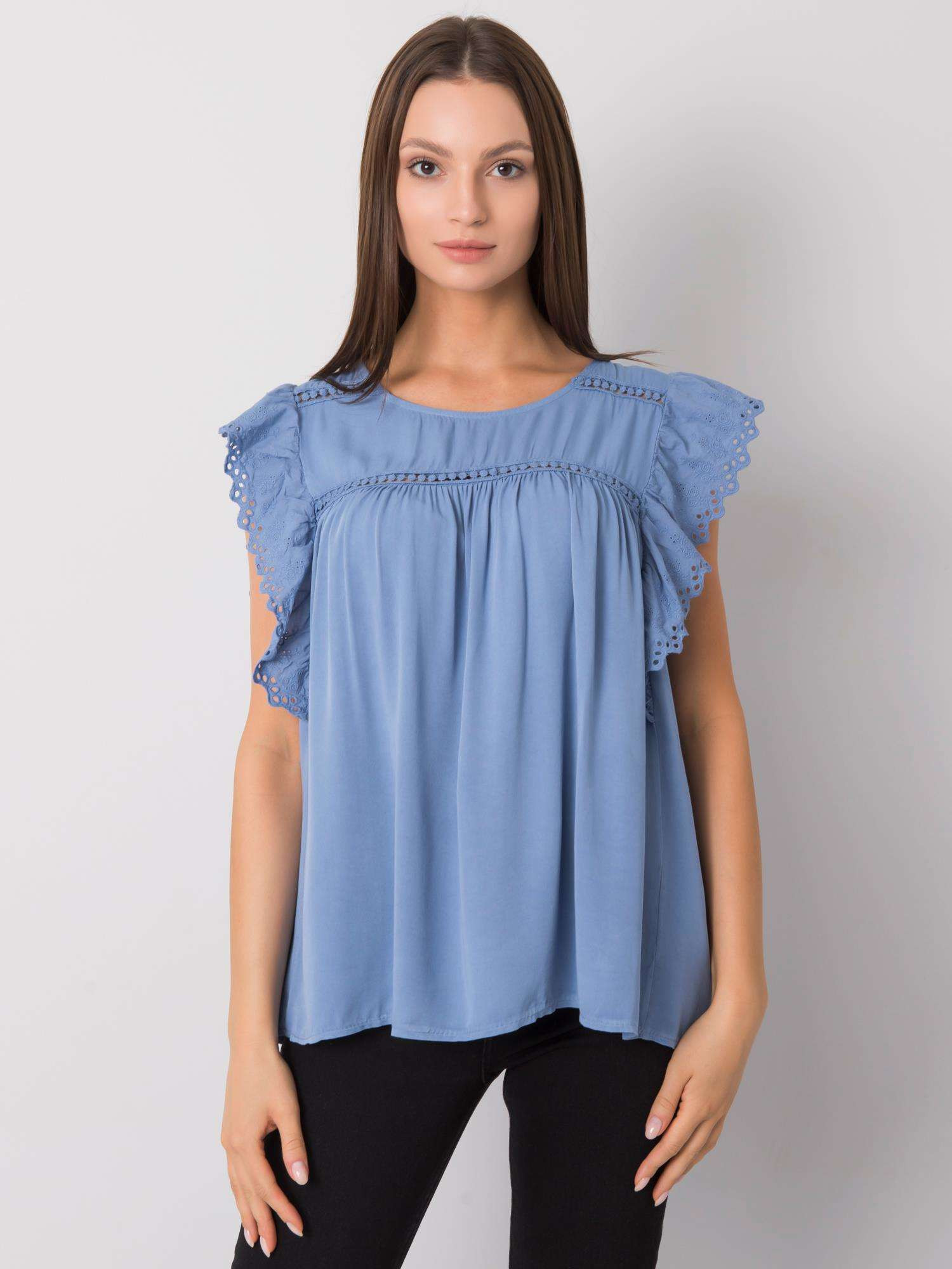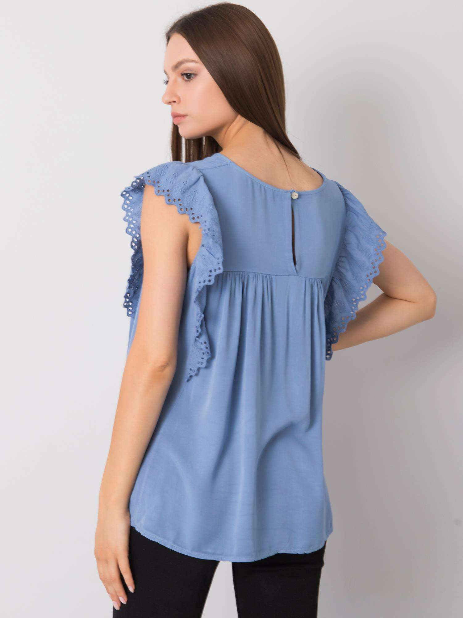 Wykonana z wysokiej jakości materiału letnia bluzka w stylu boho z kolekcji Yups. Model z okrągłym dekoltem i zapięciem z tyłu na guziczek. Zdobiona falbanami przy ramionach. Luźny, swobodny krój.