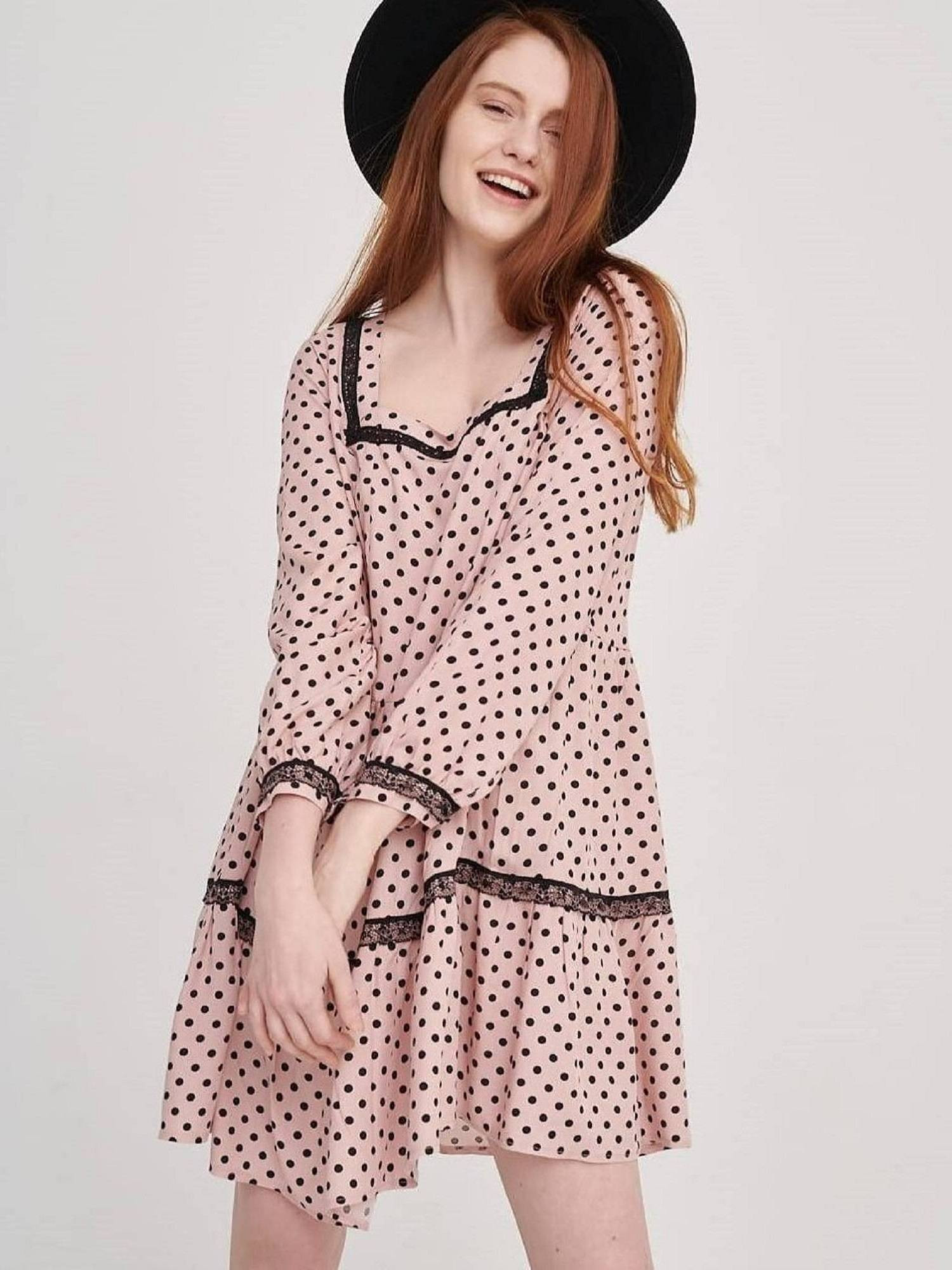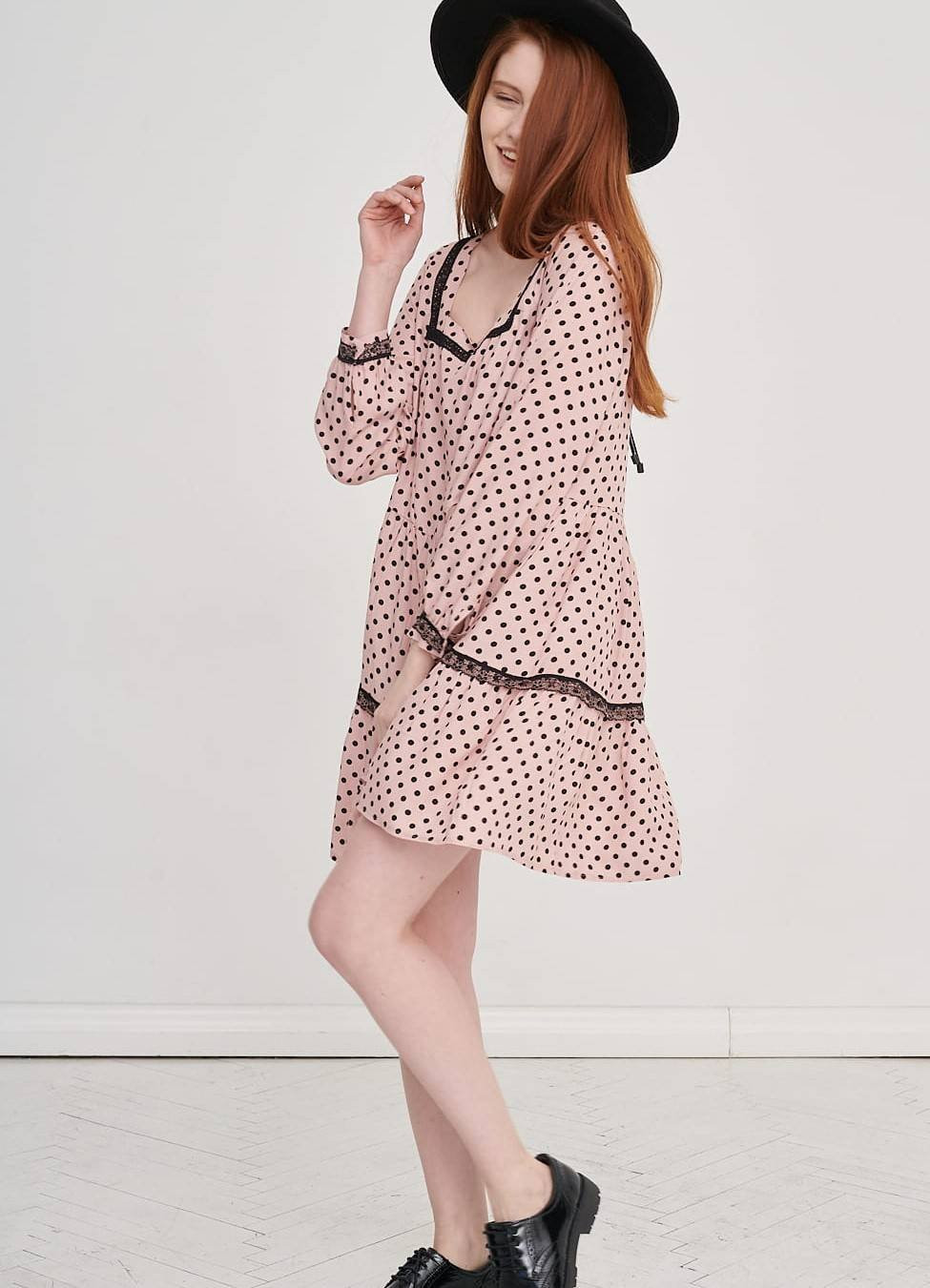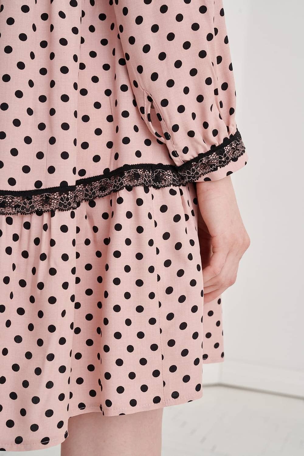 Różowa sukienka w groszki z dekoltem caro Blue Shadow
