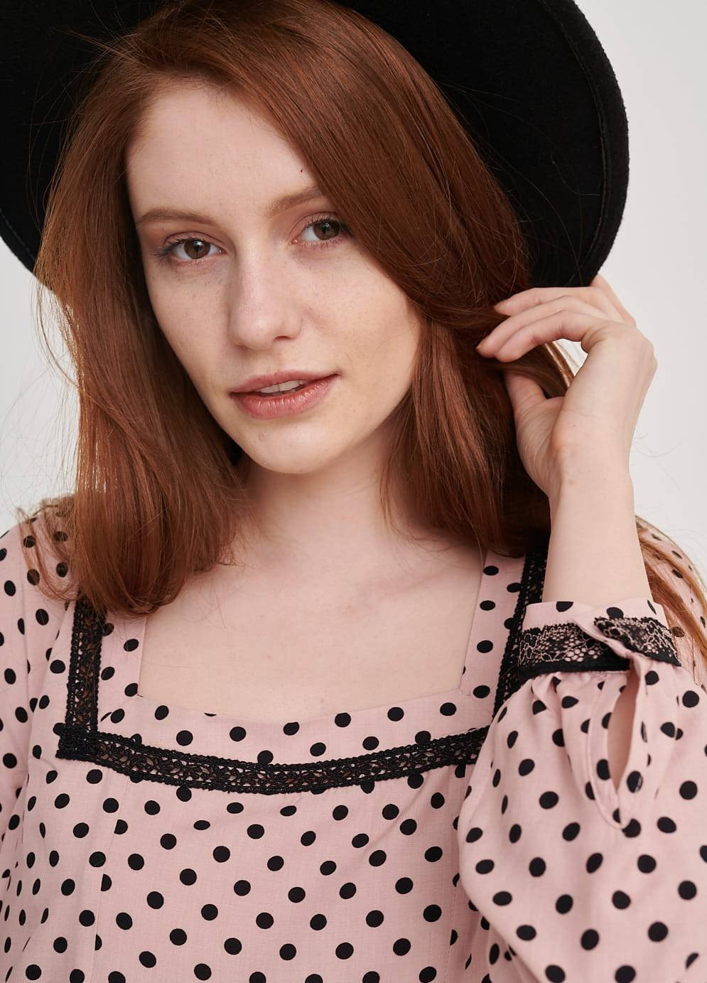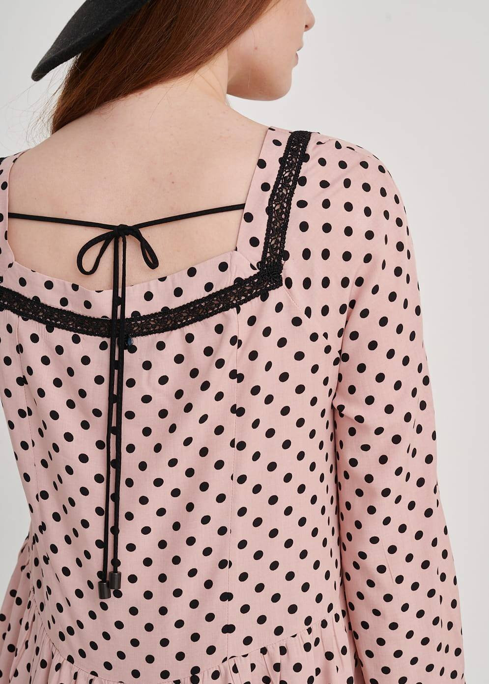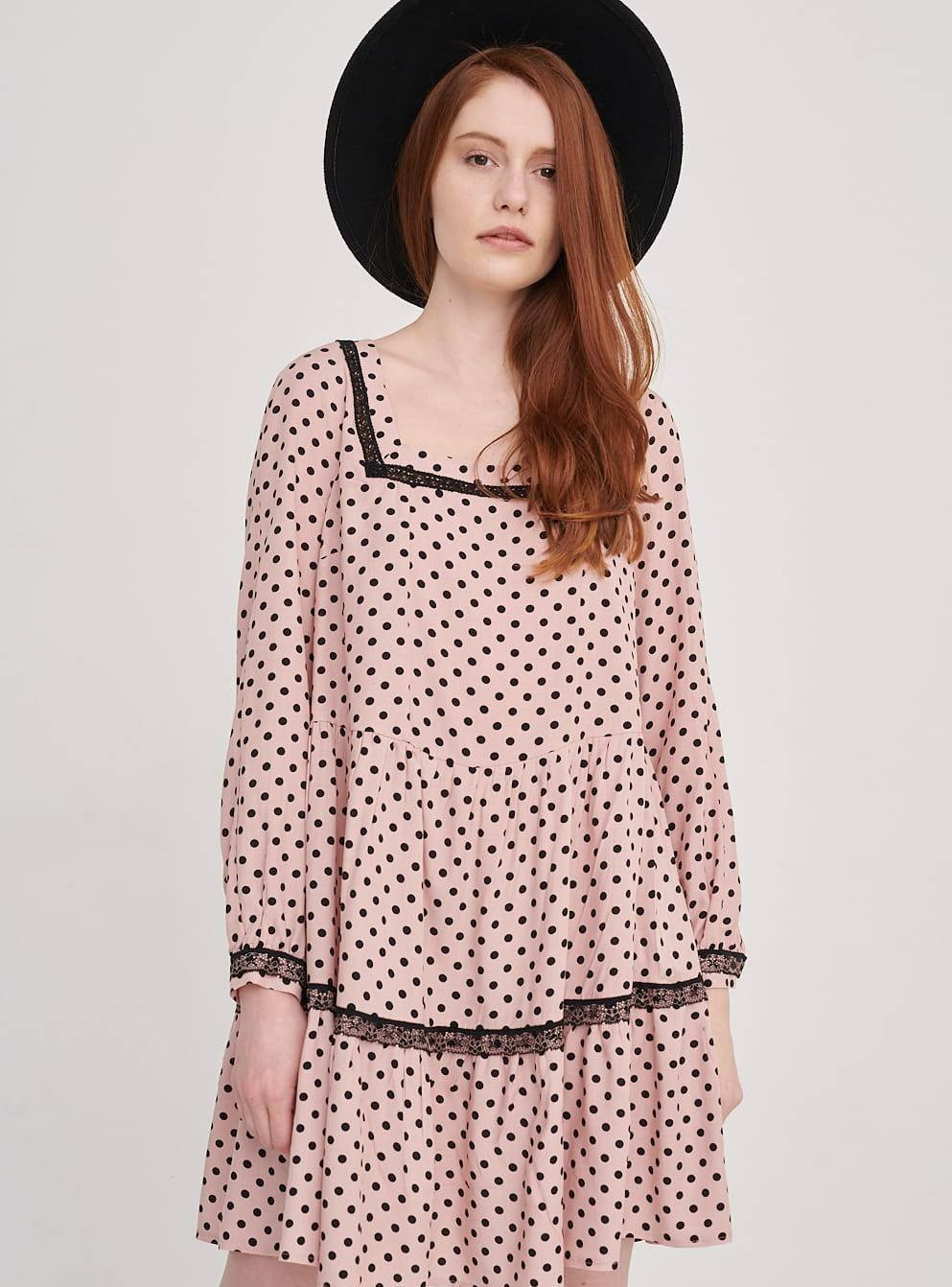 Różowa sukienka w groszki z dekoltem caro Blue Shadow