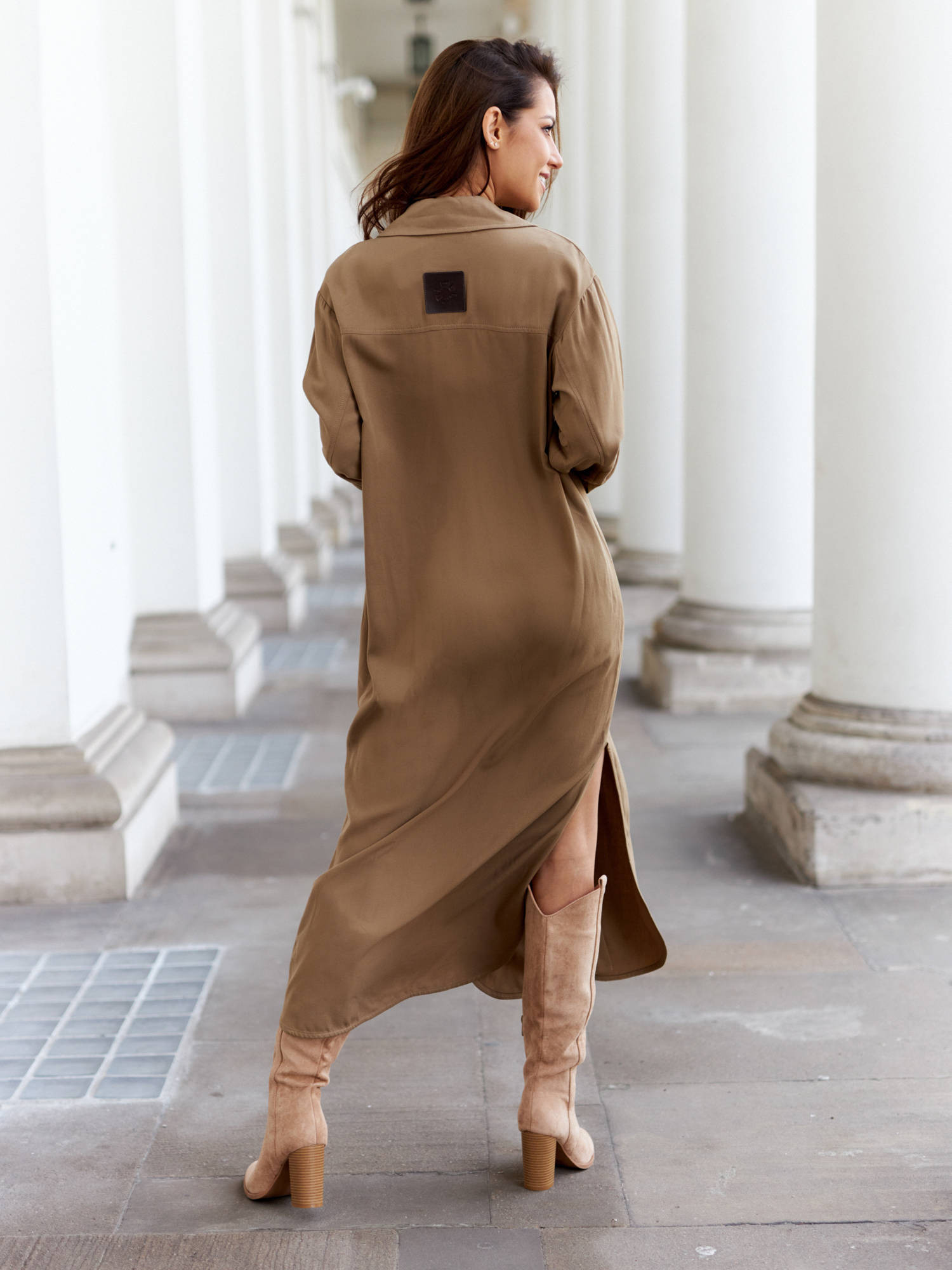 Fantastyczna maxi sukienka koszulowa z kolekcji LeMonada. Model wykonany z przyjemnej w dotyku bawełny z kołnierzykiem i klasycznym zapięciem na guziki. Efektowne rozcięcia po bokach.