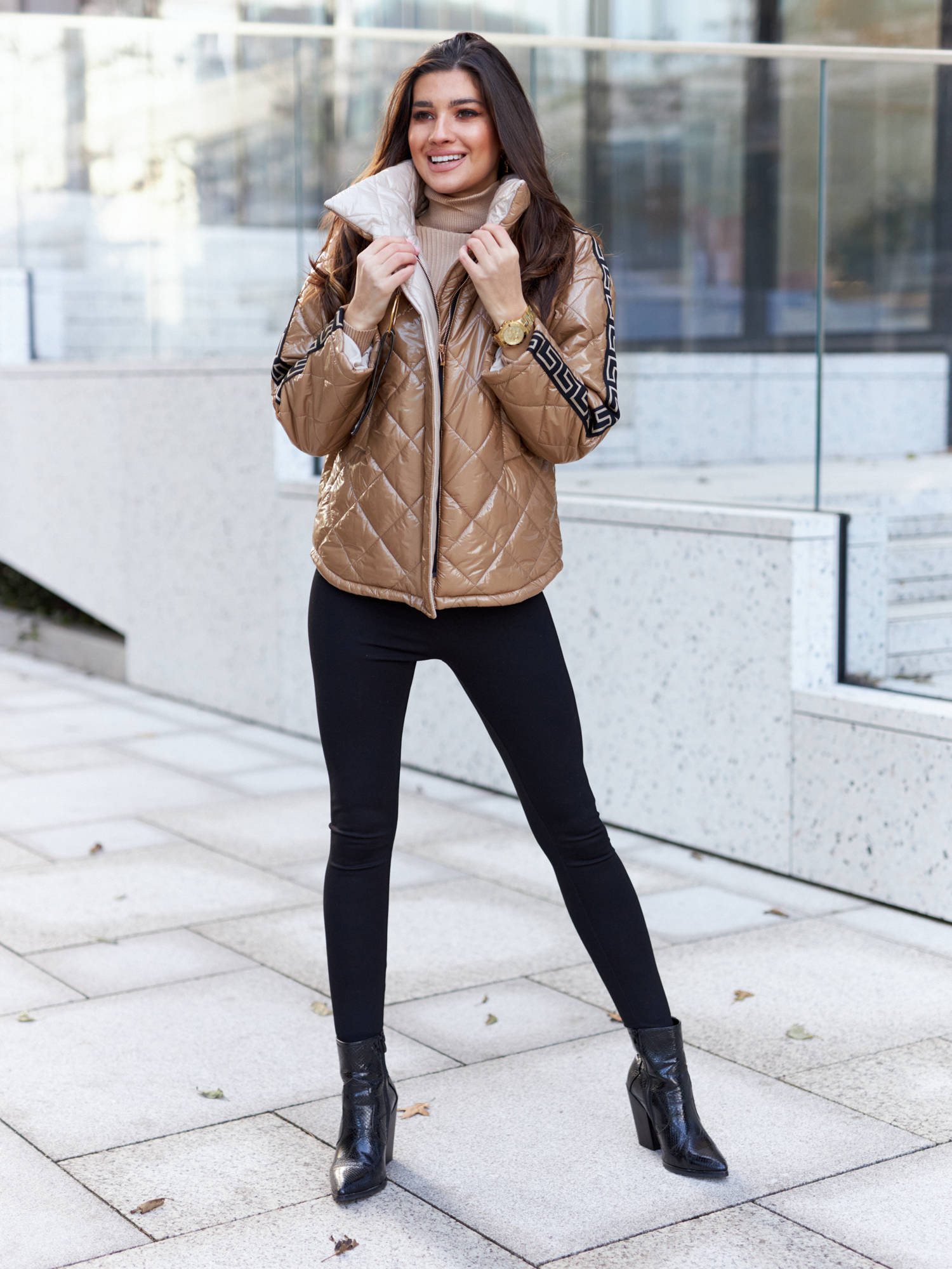 Karmelowa kurtka pikowana ozdobna taśma Cocomore