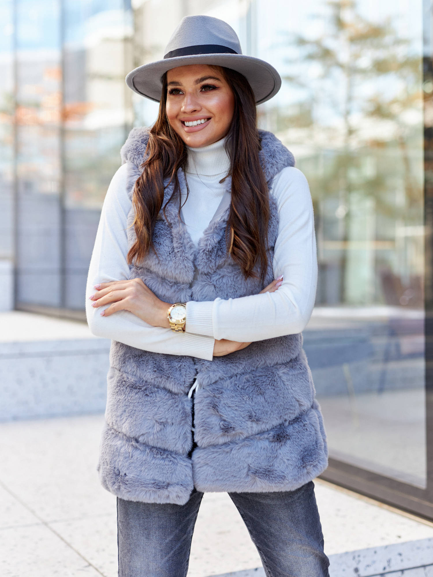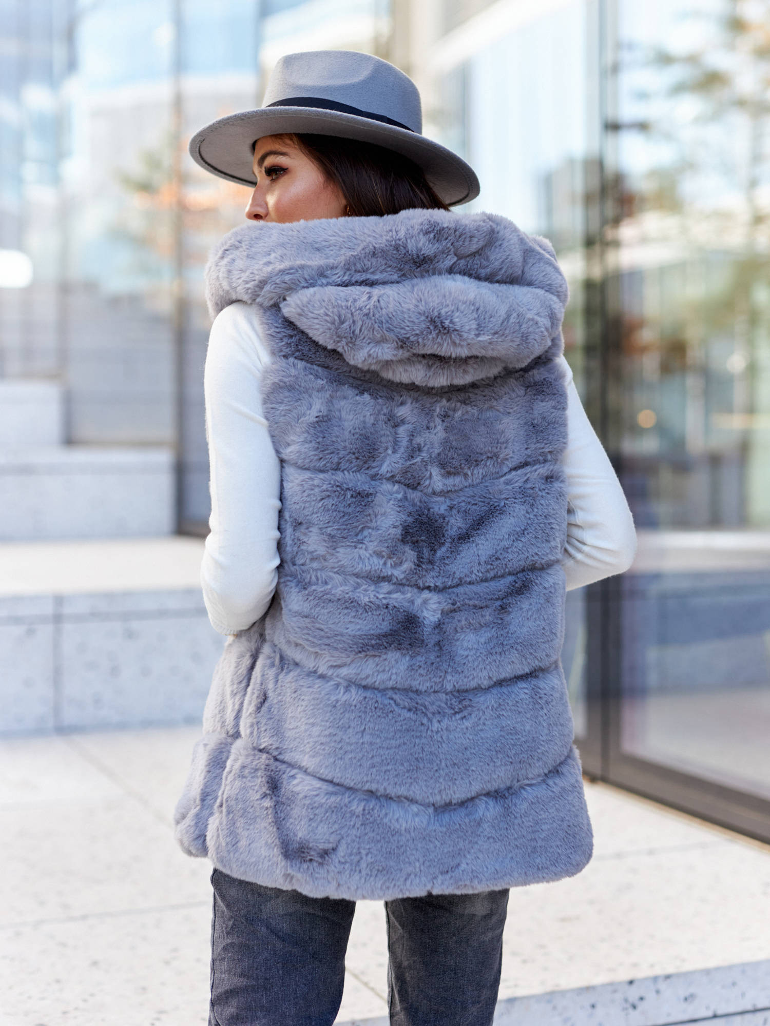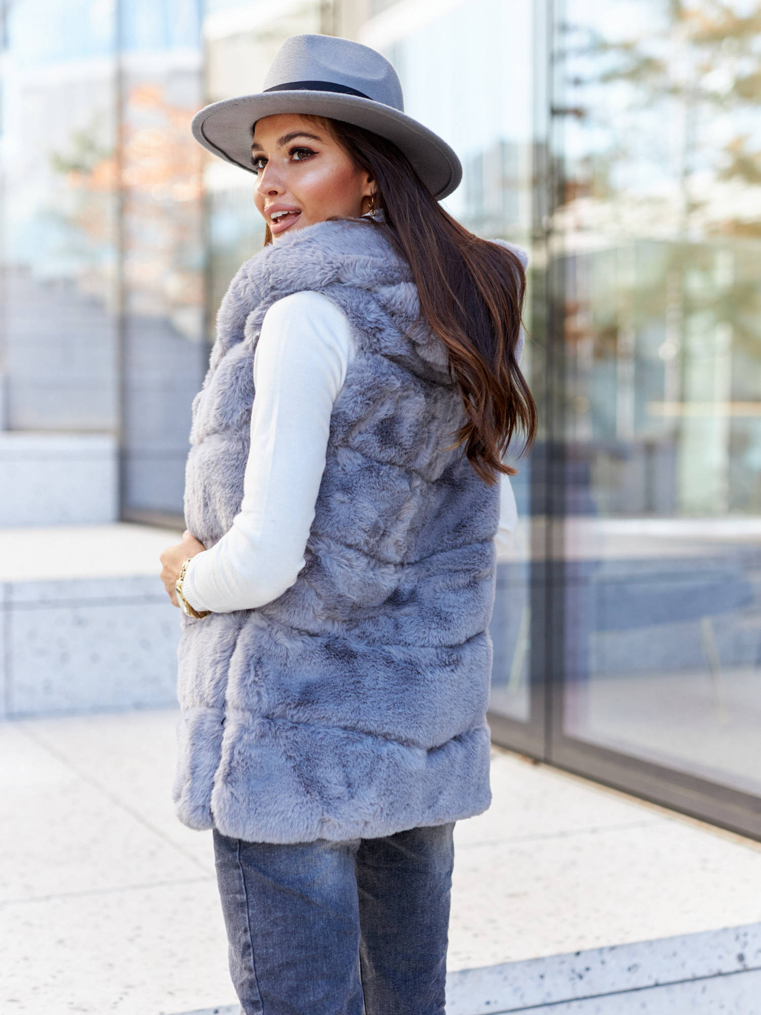 Ekstrawagancka i wygodna. Jest ciepła, miła w dotyku i sprawia, że każda stylizacja nabiera zupełnie innego wyrazu. Pasuje zarówno na eleganckie okazje jak i doskonale będzie współgrać z codziennym stylem. Z powodzeniem zastąpi kardigan czy kurtkę skórzaną. Ogromnym plusem kamizelki jest to, że mogą ją nosić także weganki! Kamizelka ze sztucznego futerka, daje pewność, że w procesie produkcji nie ucierpiało żadne zwierzę.