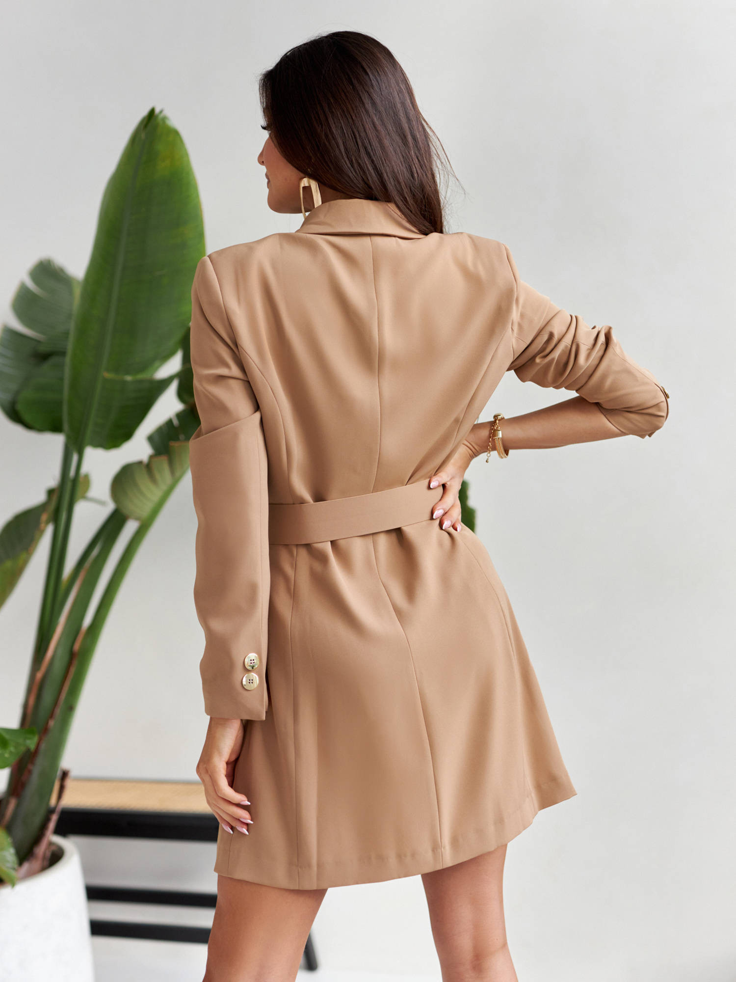 Karmelowa sukienka żakietowa z paskiem By o la la