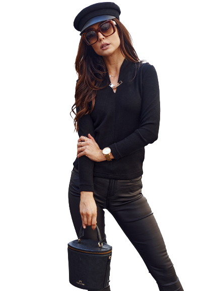 Wykonana z miękkiej dzianiny taliowana bluzka polskiej kolekcji Cocomore. Model z głębokim dekoltem V i biżuteryjnym detalem.