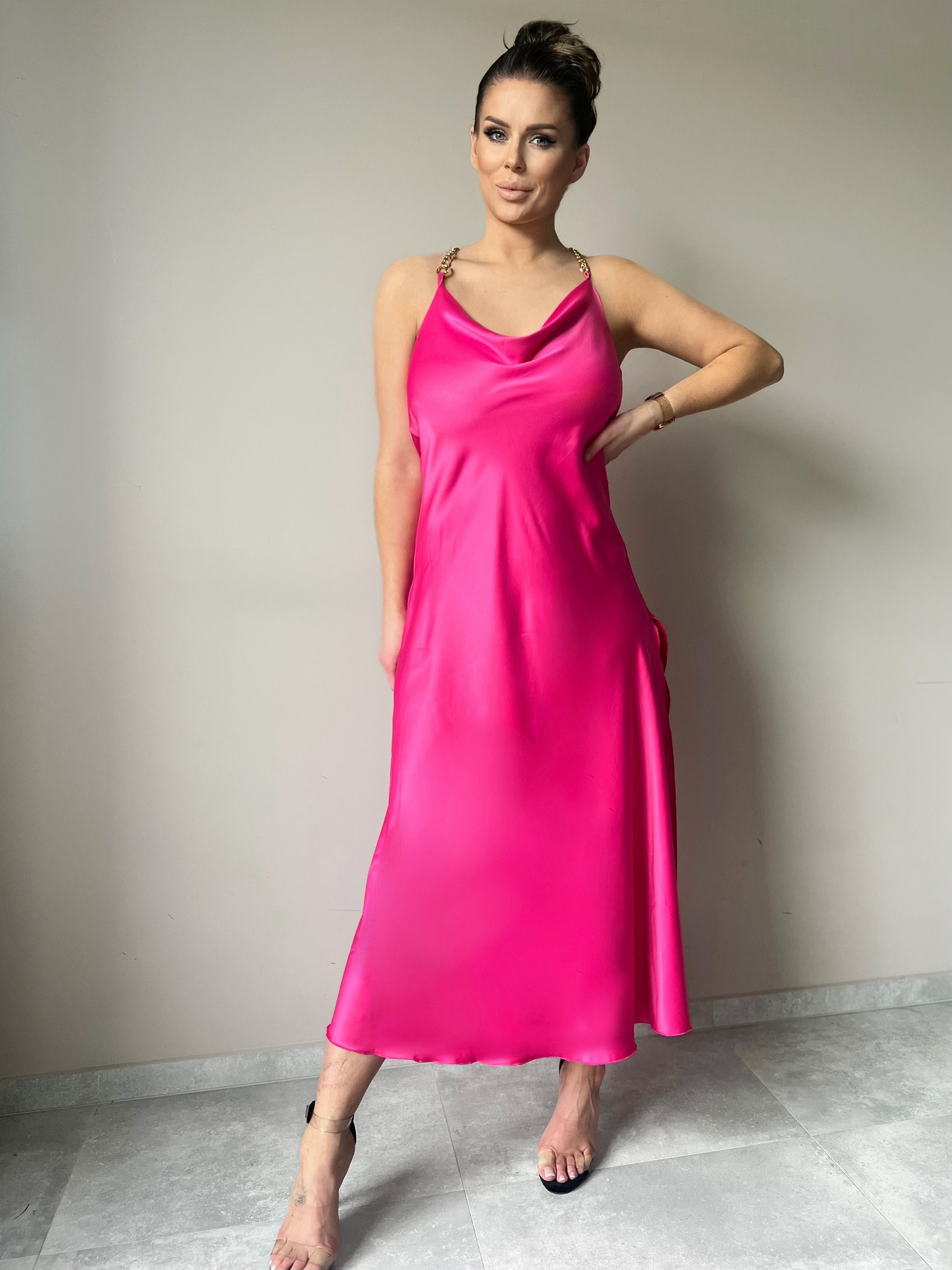 - Długa, elegancka sukienka satynowa z lejącym dekoltem
