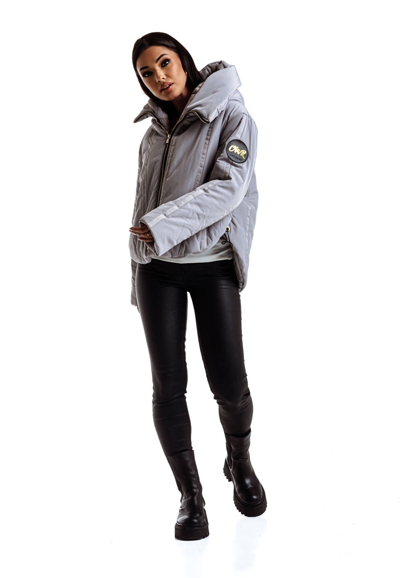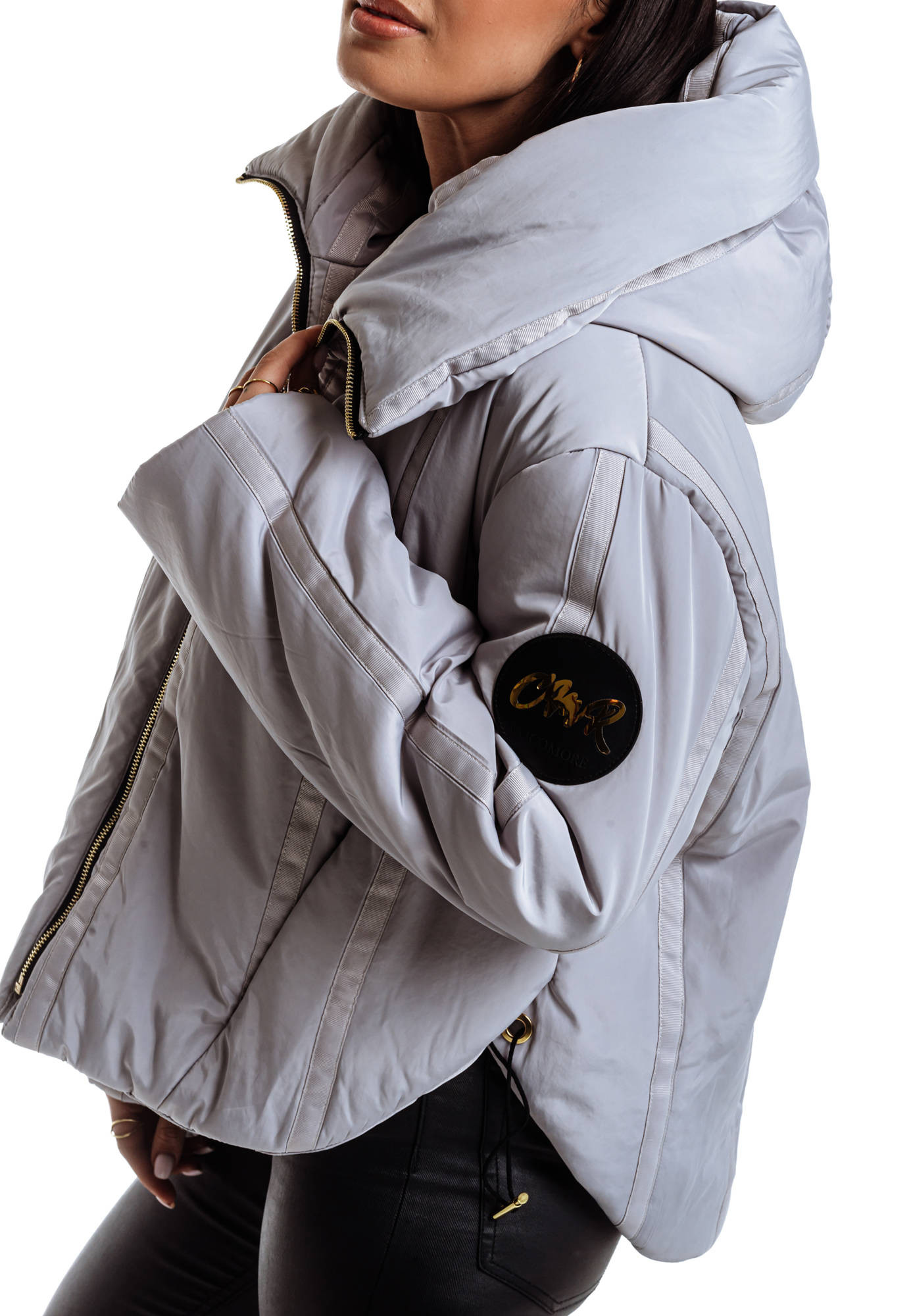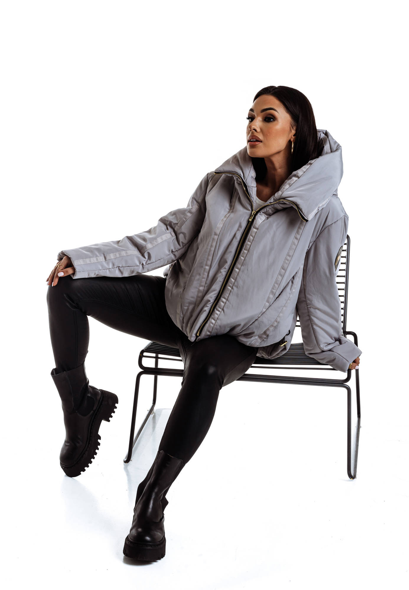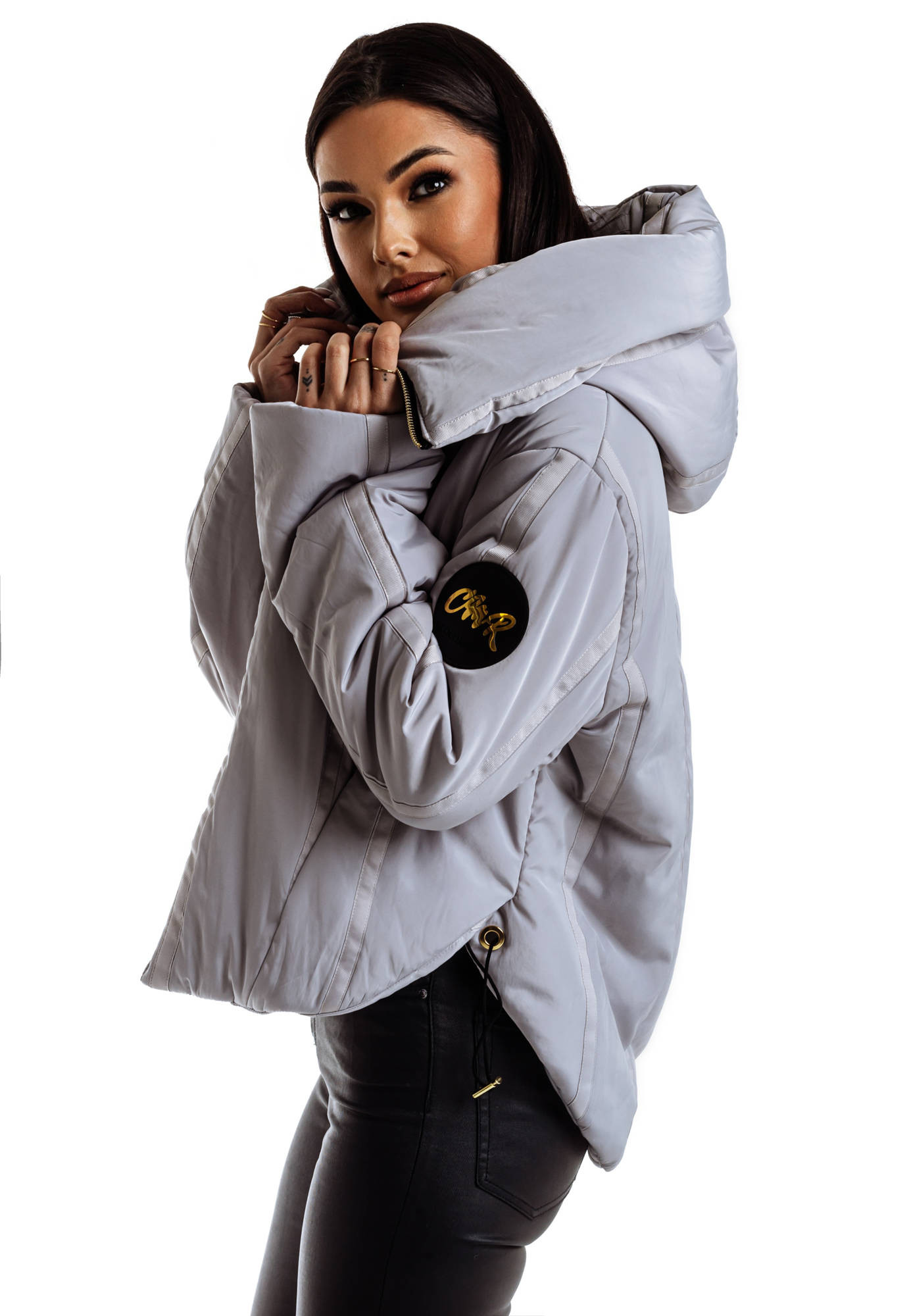 - Pikowana w kwadraty lekka kurtka z szerokim kapturem