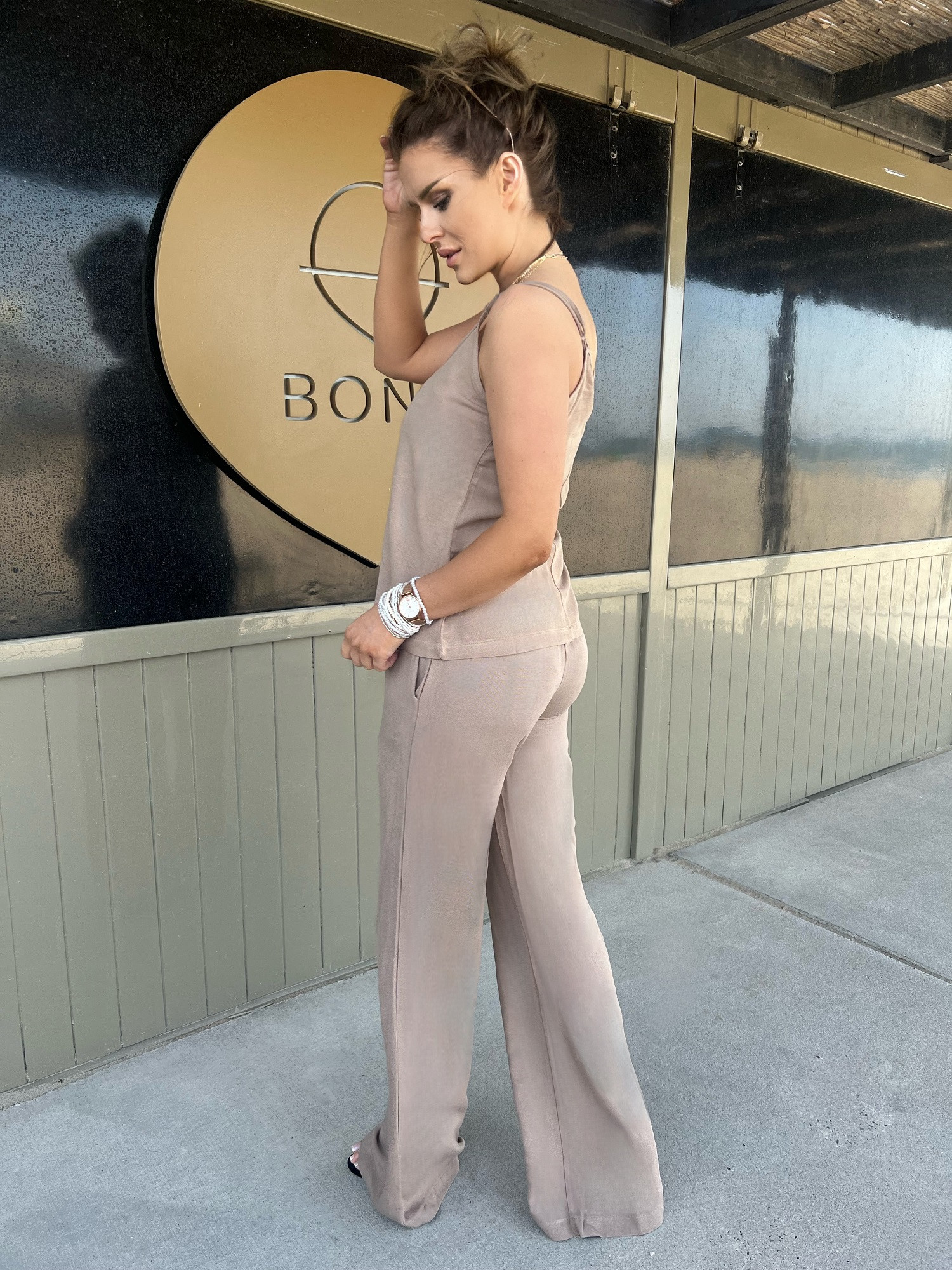 - Wygodne i stylowe letnie spodnie z szerokimi nogawkami wykonane z naturalnych materiałów