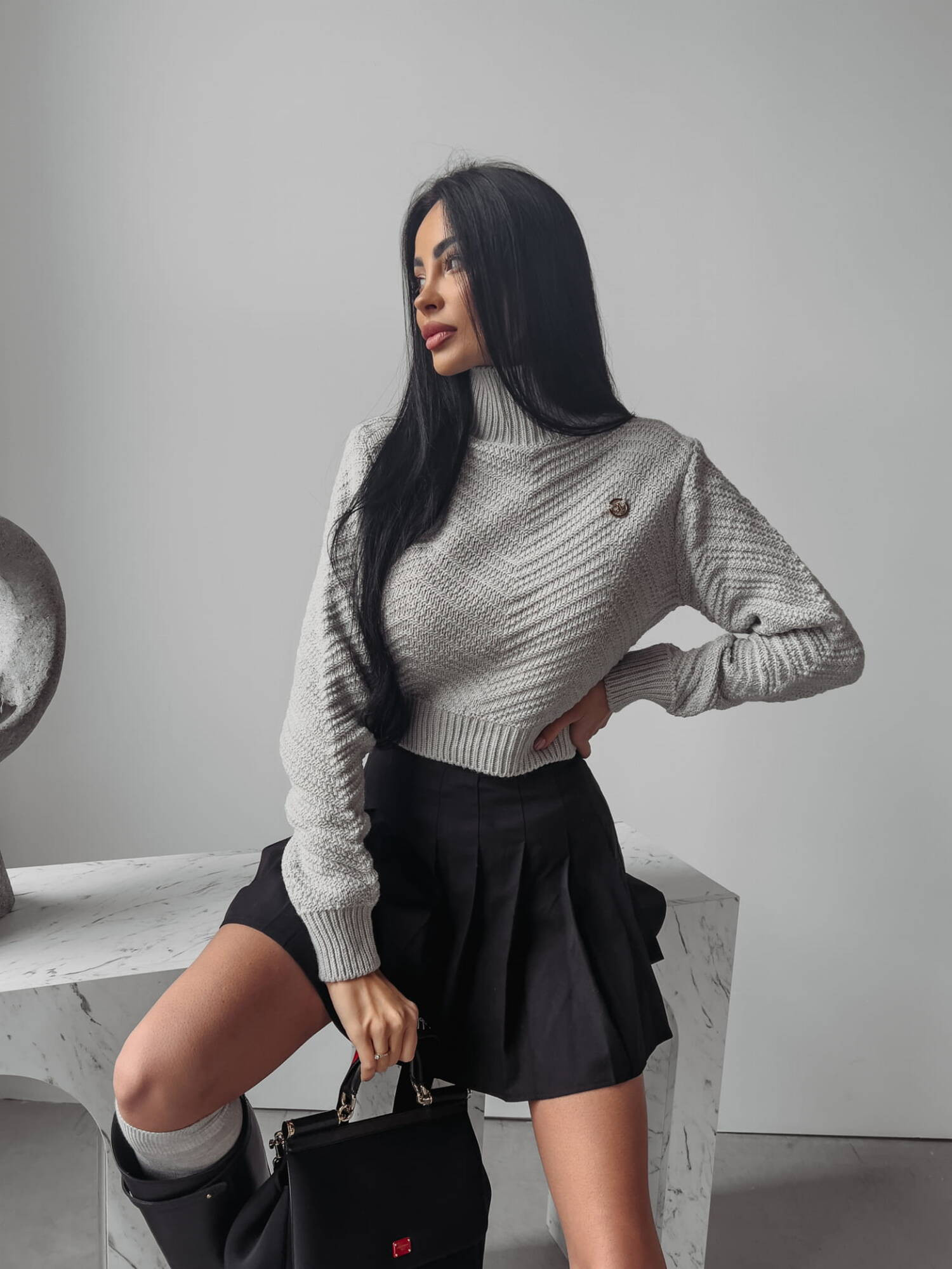 Uniwersalny i komfortowy krótki sweter, który wykonany jest z miękkiej, przyjemnej w dotyku dzianiny. Zapewni przyjemne ciepło w chłodniejsze dni, a przy tym wygląda supermodnie i kobieco.