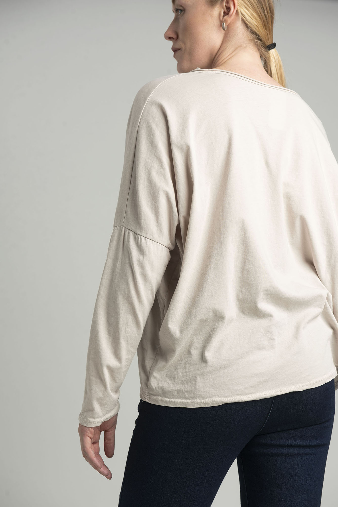 Damska bluzka z rękawami 3/4 i długością do bioder.