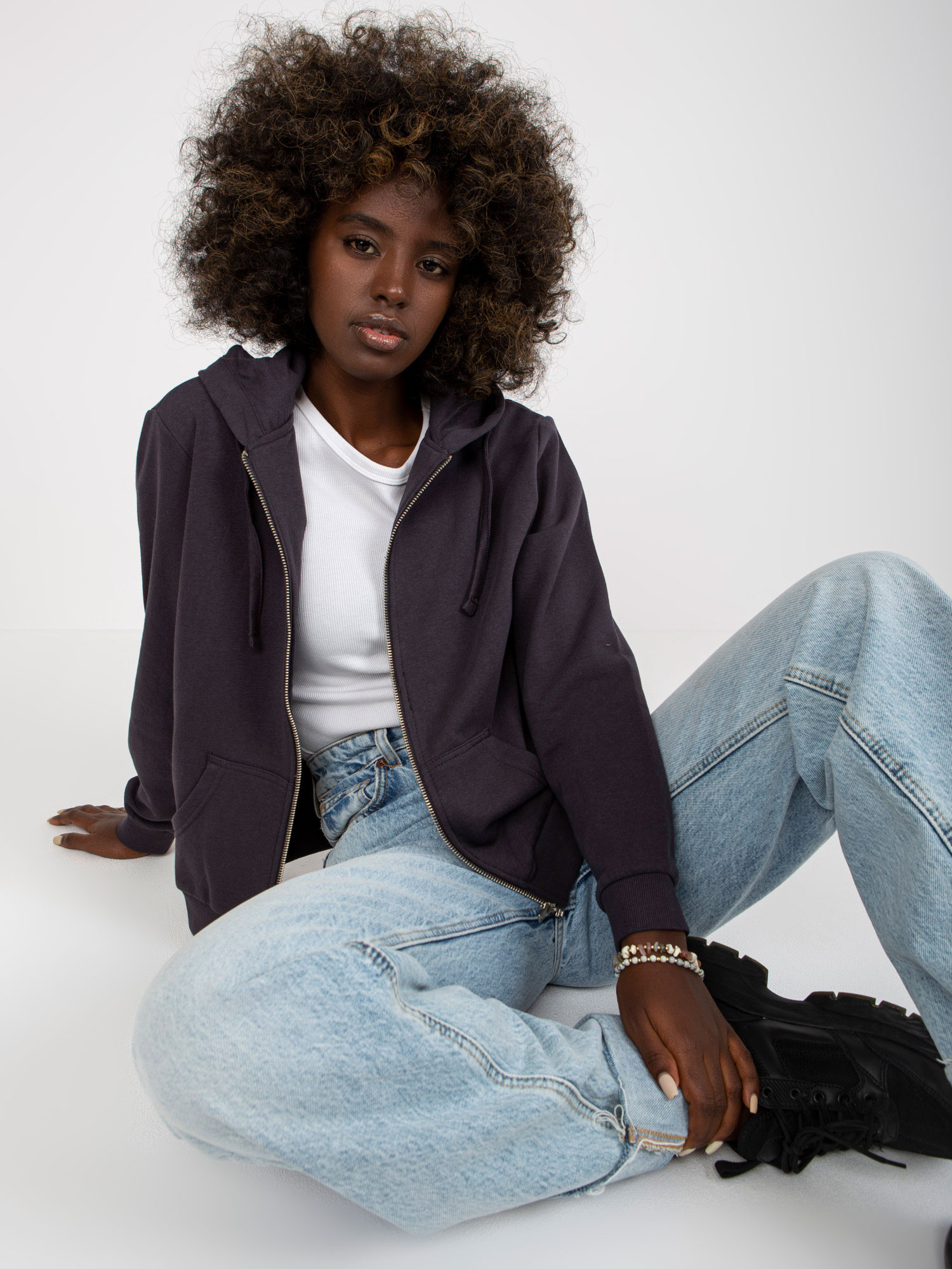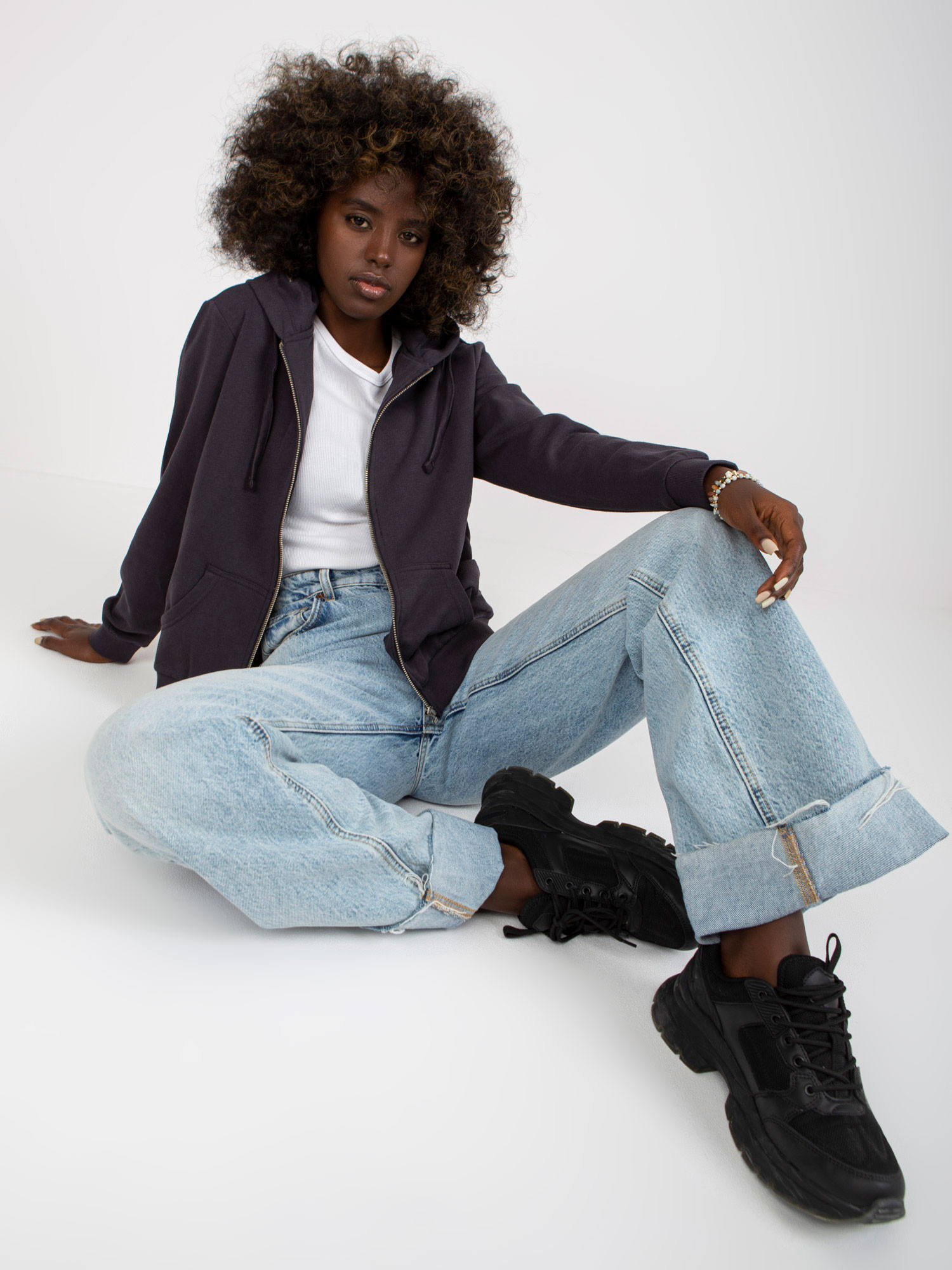Grafitowa rozpinana bluza z kapturem i kieszeniami