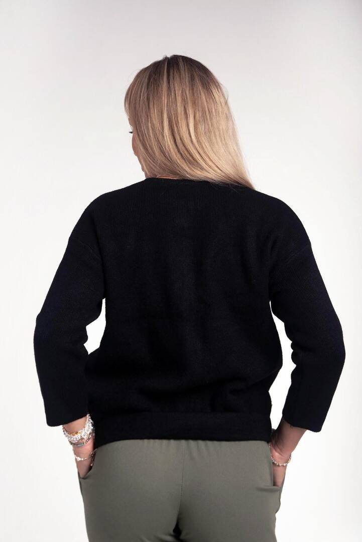 Wykonany z bardzo przyjemnej w dotyku dzianiny. Posiada okrągły dekolt i rękawki o długości 3/4. Jego dodatkowym atutem są oryginalne skośne kieszonki z przodu.