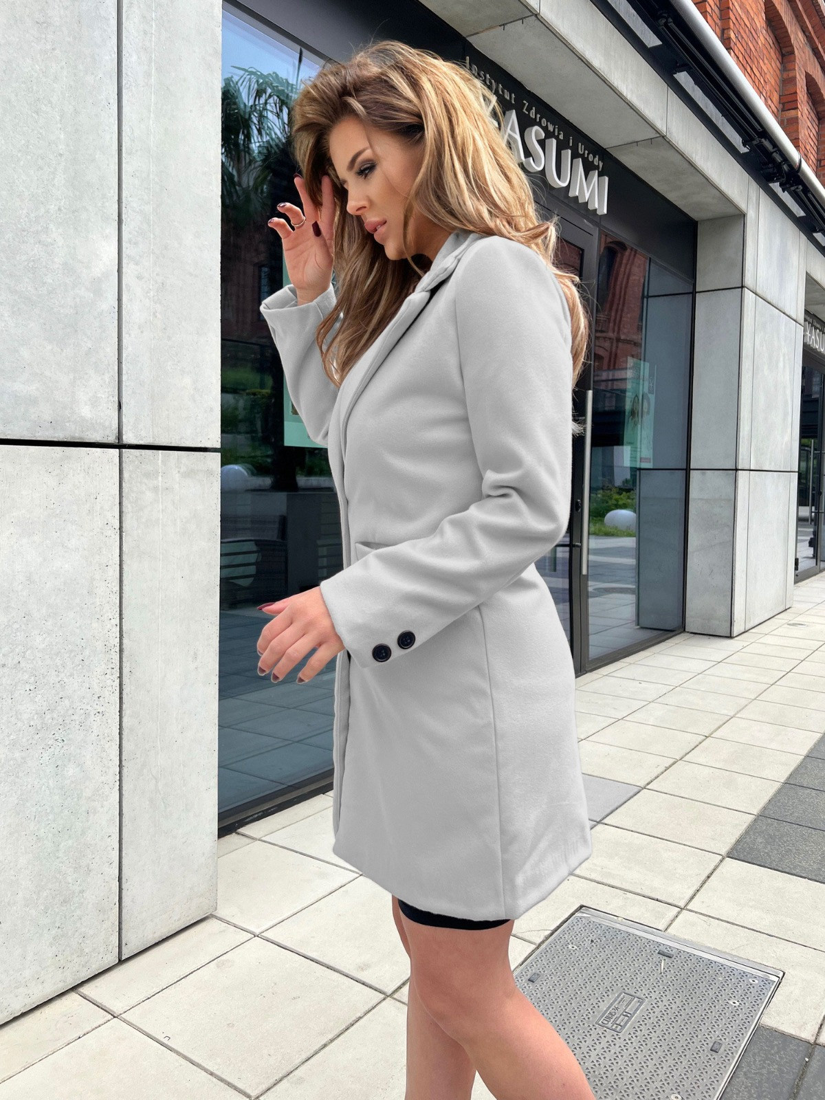- Klasyczny, lekki płaszcz z zapięciem na dwa guziki